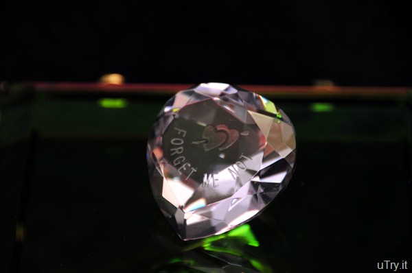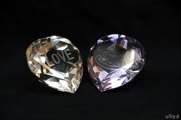 Last but not least, the lucky winner to this set of heart shape crystal paper weight with the word “Love” and the other with the image of a cake imprinted is….