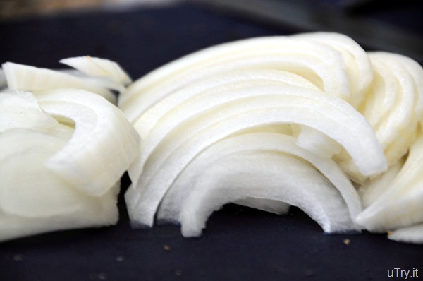 Up next, the sweet yellow onions.  Simply thinly sliced them and sautéed them until crisp-tender.  They add a wonderful tender-crisp texture and sweet flavor to this dish.