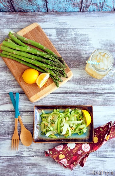 One of my favorite Spring vegetables is asparagus. I usually prepare them on the grill, make Green Gazpacho cold soup or roast them in the oven. And lately, I fall in love with eating them raw as in this Asparagus Ribbon Salad with Lemon Vinaigrette. They are shaved to ribbon thin and the acidic vinaigrette helps soften them a little. So, the texture of the asparagus holds up and is crisp-tender. Really refreshing and delightful to eat.