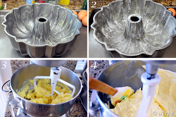 1) and 2) Butter and flour a 10-inch Bundt pan.